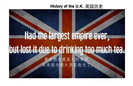 1.英国历史:曾经拥有最庞大的帝国,后来因为喝太多茶败光了。
