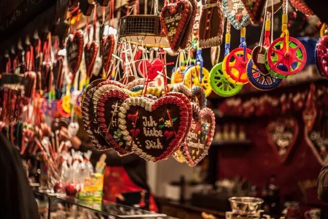 圣诞集市本来也是起源于德国,就是很多小店铺卖一些吃的喝的,特别是手工制品,香皂啊手工姜饼巧克力火锅啊什么的,所以基本上整条街都非常流光溢彩~