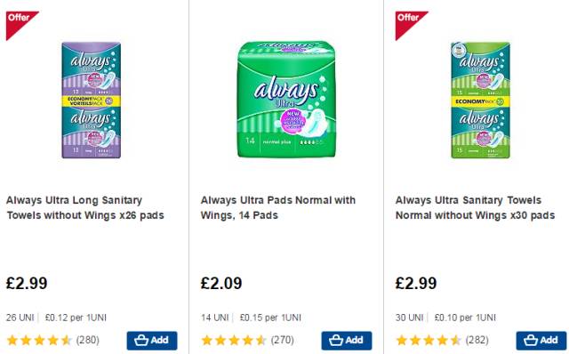 而且,他家的姨妈巾口碑一直都很棒,还超级便宜~大家感受一下,经常还会有3 for 2(买2送1):