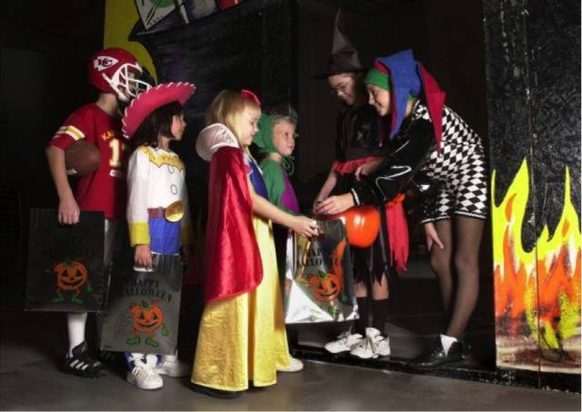 万圣节前夕,孩子们会提着南瓜灯,穿着各式各样的稀奇古怪的服装,挨家挨户地去索要糖果,不停地说:“trick or treat”(意思是:“给不给,不给就捣蛋。”)要是你不肯给糖果的话,孩子们就会很生气,用各种方法去惩罚你,例如:把垃圾倒在你家里、把口香糖粘在大门的锁孔里或者把烟囱堵住等等,直到你肯给他们糖果为止。而最古老的传统是:人们会扮成精灵,然后逐家逐户去恳求食物。有人相信要通过给予崇拜和食物来讨好精灵,否则这些精灵就会捉弄人。还有人相信扮成精灵的样子就可以去愚弄或吓跑这些恶灵,这样的话那些恶灵就不会伤害他们。