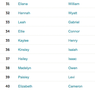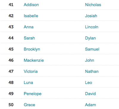 下面是2017年度最受欢迎的男孩女孩英文名Top50完整榜单: