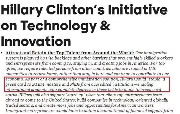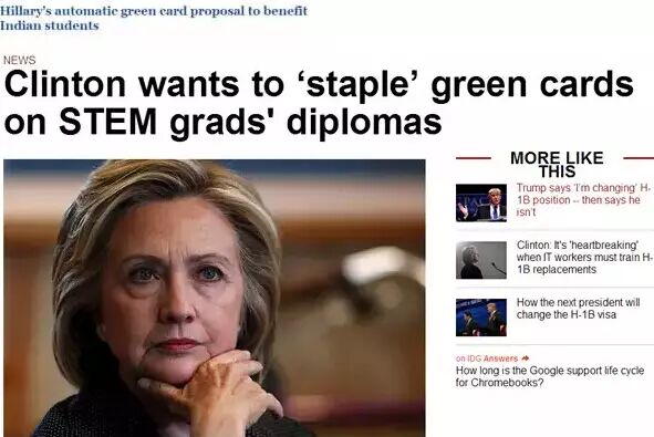 此次,希拉里推出的科技计划不触及H-1B签证计划。希拉里一直对如何处理这一临时工作签证保持沉默;她的全面移民计划也没有触及它。