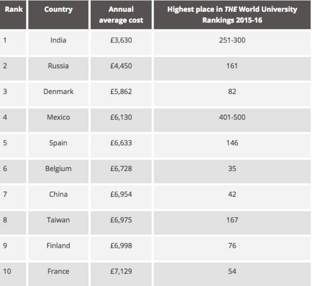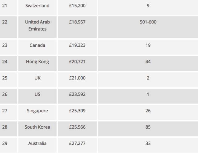 土澳以2.7277万英镑即是25.2万人民币的费用荣登榜首!腐国排名第五!!
