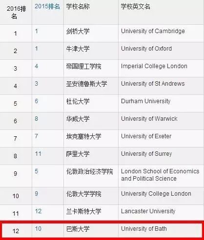 而巴斯大学2015年排名第10,