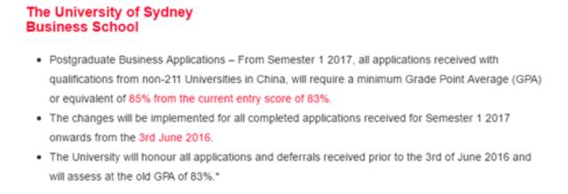 你们申请的整体要求被提升了! (哈哈哈!还好我不读悉尼U,还好我也毕业好多年。小编暗自偷笑下!)