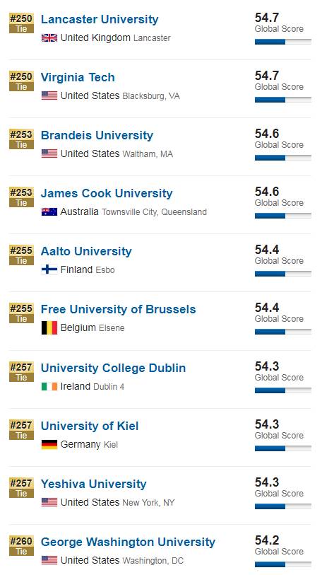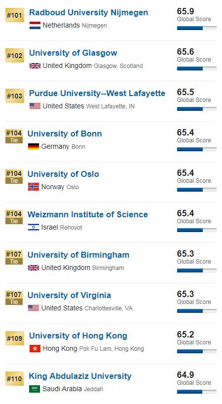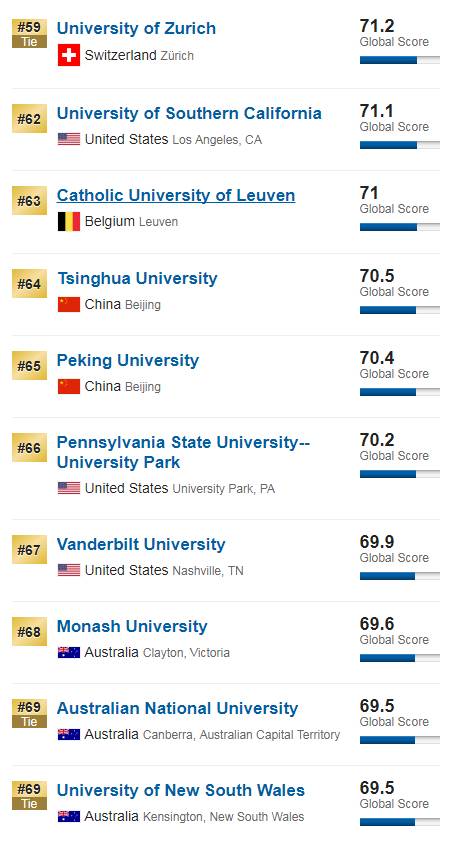 该榜单主要考察了来自全球74个国家的1800所大学,并将前1250所大学列举出来。