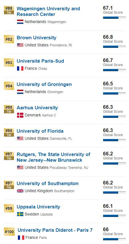 中国:两所中国大学入围TOP100,清华大学排64位,北京大学排65位。