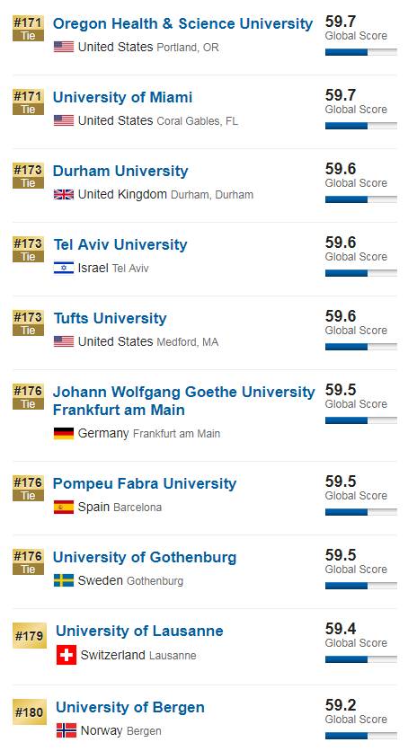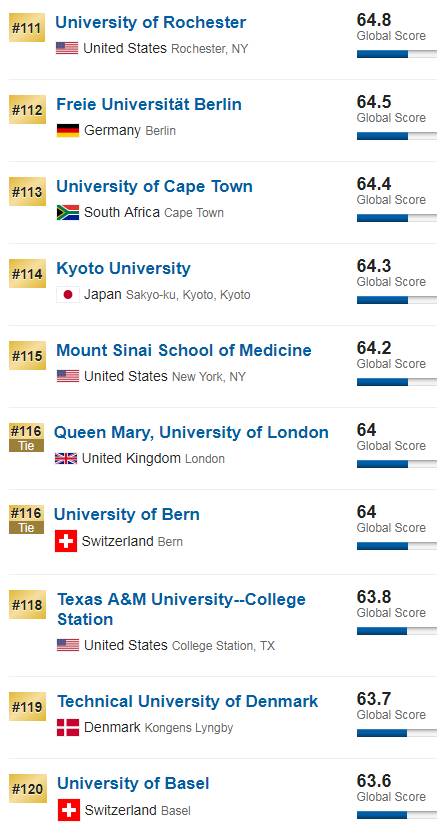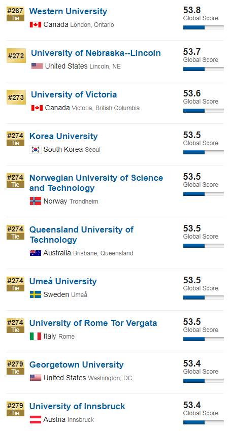 It measure their academic research performance and their global and regional reputations. Students can use these rankings to explore the higher education options that exist beyond their own countries' borders and to compare key aspects of schools' research missions. These are the world's top 1,000 universities.
