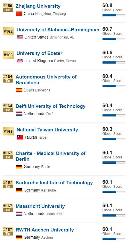 榜单内的大学均为综合性研究型大学,根据大学的学术研究表现、全球及本地的声誉指数等来进行排名。