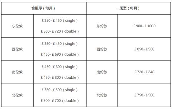 根据Natwest的2017最新学生调查,伦敦地区的学生平均月房租高达£584.23,是全英国最高房租的城市,超过全英平均水平£448将近£140。而像贝尔法斯特,卡迪夫等等偏远地区的平均月租就低过全英水平100镑以上。
