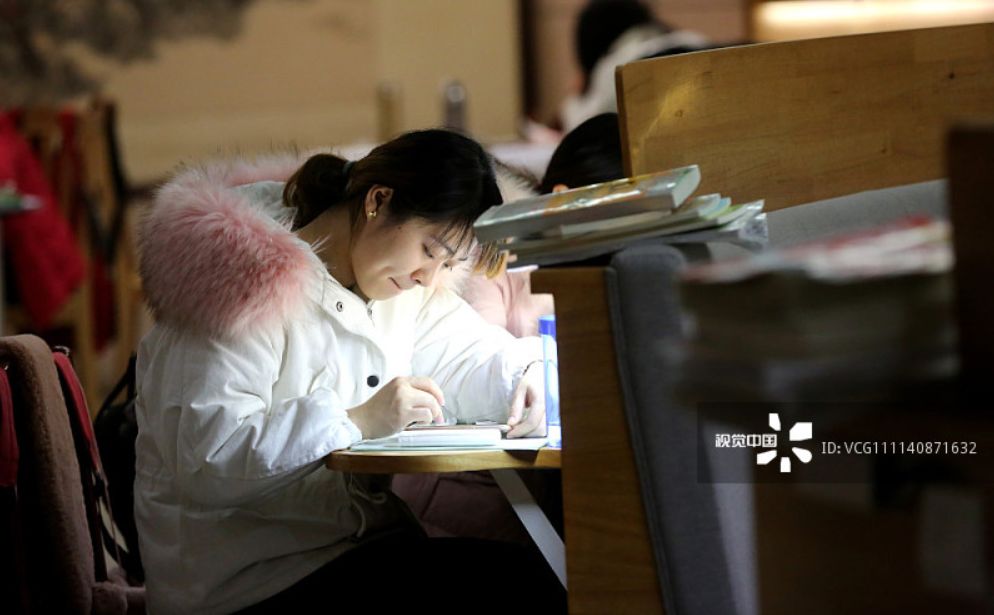 2017年12月13日,郑州。凌晨五点半,郑州大学图书馆的大门尚未开启,备考的学子已早早前来排队等待。在等待的过程中,学生拿出书本背记。