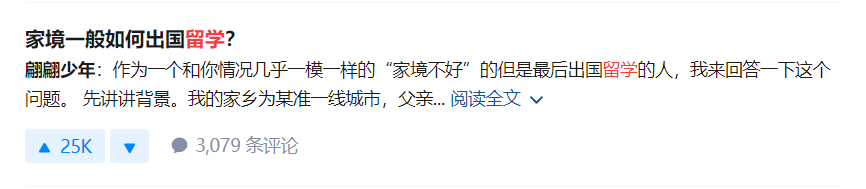 一、知乎搜“留学”,评论最多的话题不是“出国留学会对一个人的影响有多大”、不是“留学之后会有什么坏习惯”,是【家境一般如何出国留学】。