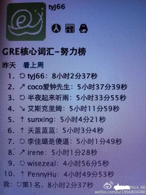 所以当我在背单词的时候能得到成就感,背完单词后能得到满足感,这就不是一个非常难坚持的事情了。甚至在我背GRE的时候,经常会有很爽的感觉,我一度以为背单词可以让我分泌多巴胺。在我大四真正要开始备考GRE的时候,我花在单词上的时间,也就几天而已。我当时是用的拓词,截图为证: