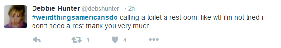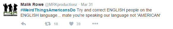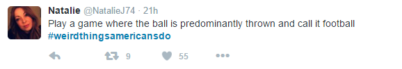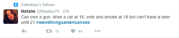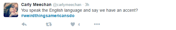 没想到她的推特引起了英国人民全国上下的强烈不满,昨天他们为了部落,啊不,为了日不落下帝国的尊严,进行了反击,还加上了话题#weirdthingsamericansdo (美国人做的奇葩事)