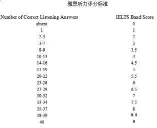听力和阅读的计分方式类似,是按照答对题数对应相对分数的方法来计算,雅思听力试卷包括40题,每答对一题得一分。满分的原始分均为40分,考生依据其原始分获取1-9分的等级分。