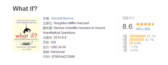 虽然门罗的解答很风趣,但其中所蕴含的科学很准确。这本书不仅使你感到愉悦,同时还能学到些东西,比如说,弹道学,DNA,海洋,以及大气层等。如果你热衷于猜想和假设,这本书不容错过。