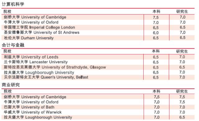 2017年英国各专业TOP10高校雅思分数要求