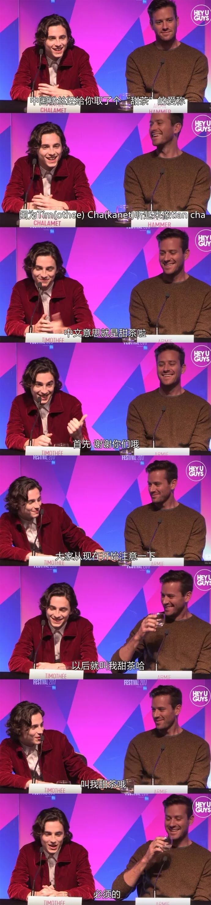 因电影《请以你的名字呼唤我》而被中国观众所熟知的提莫西·查拉梅一笑起来可是甜煞众人,加上名字谐音类似中文“甜茶”的发音,这个可爱的花名就顺理成章的出现了。