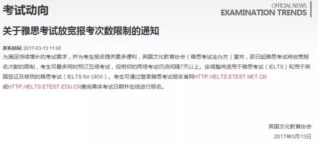 雅思考试放宽报考次数?!