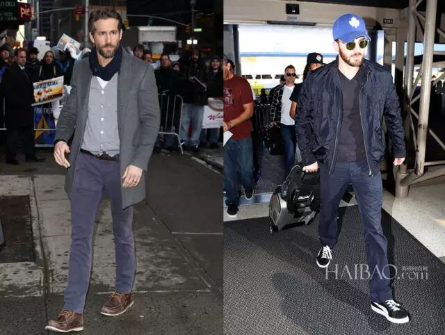 在选择裤子的时候,尽量选修身的,可以学学S的老公绿灯侠Ryan Reynolds,