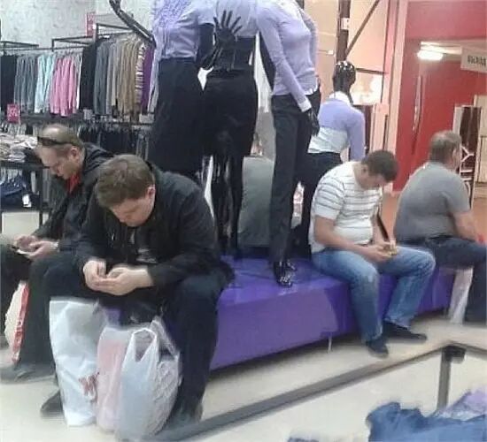 至于那些有女盆友的懒癌晚期男患者们,千辛万苦陪逛刷卡,却宁愿抱着姑娘们的战利品在一旁等得快睡着,也舍不得看一眼店里男装那边模特身上的当季主推。